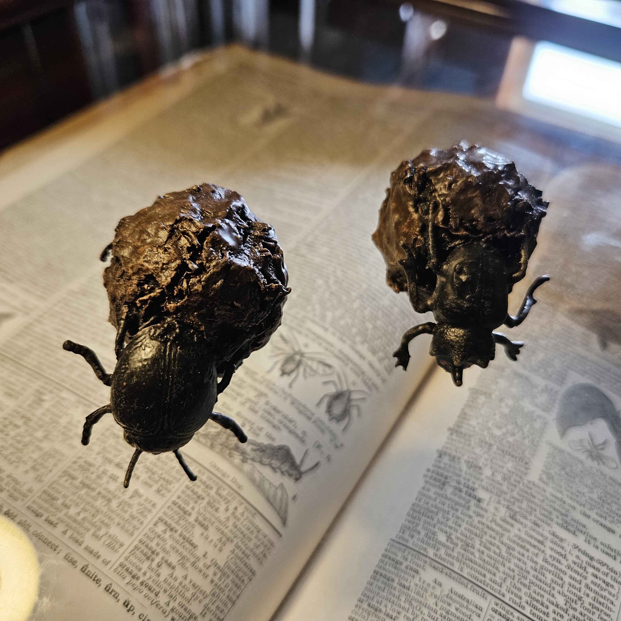 I made my dung beetles using ping pong balls, some dollar store bugs, and some spackle, but you do you!
